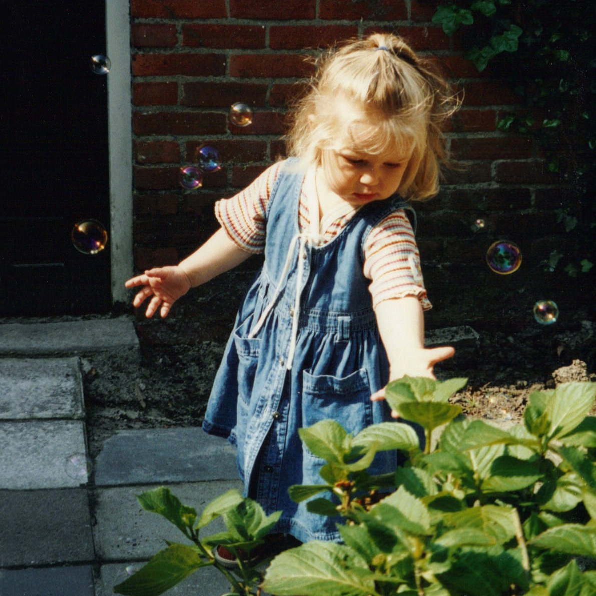 Ik kijk hier vol verwondering naar de wereld om me heen. Kleine dingen maakten mij toen al blij, zoals Playmobil. Miste ik een onderdeel? Dan maakte ik het zelf van papier, een tak of een steentje. Creatieve oplossingen verzinnen zat er al vroeg in.