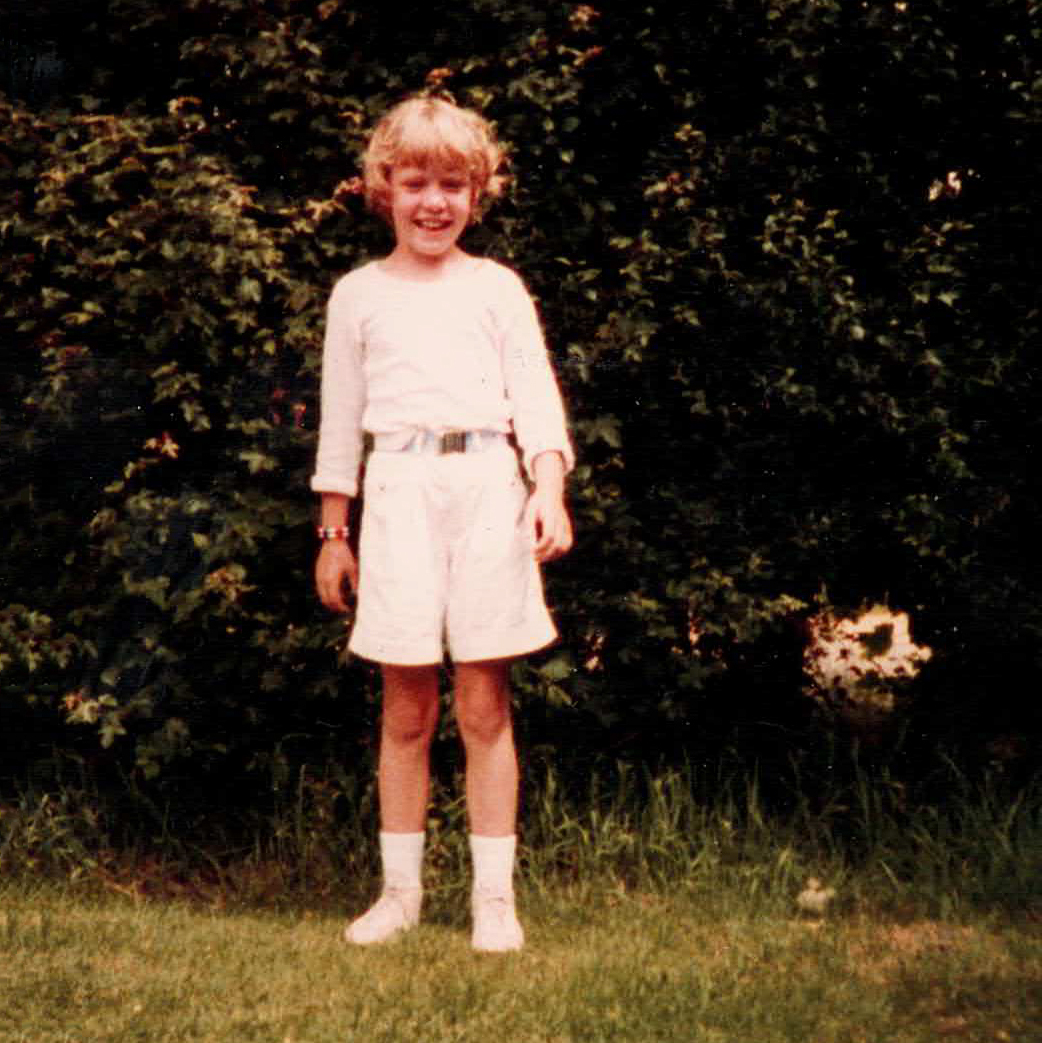 Ik ben hier in de tuin van mijn oma, waar ik heel graag kwam. Als kind was ik al bedachtzaam en sociaal. Nog steeds maak ik graag andere mensen blij - zoals onze Stouterds, wanneer ik iets voor ze oplos. Daar krijg ik energie van.