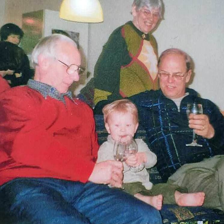 Ik zit tussen de opa's waar ik naar vernoemd ben: eentje Brits, eentje Nederlands. Deze foto staat symbool voor wat ik al sinds jongs af aan belangrijk vind: samenbrengen. Van mijn familie, van goed eten en drinken, en van de mensen om ons heen.