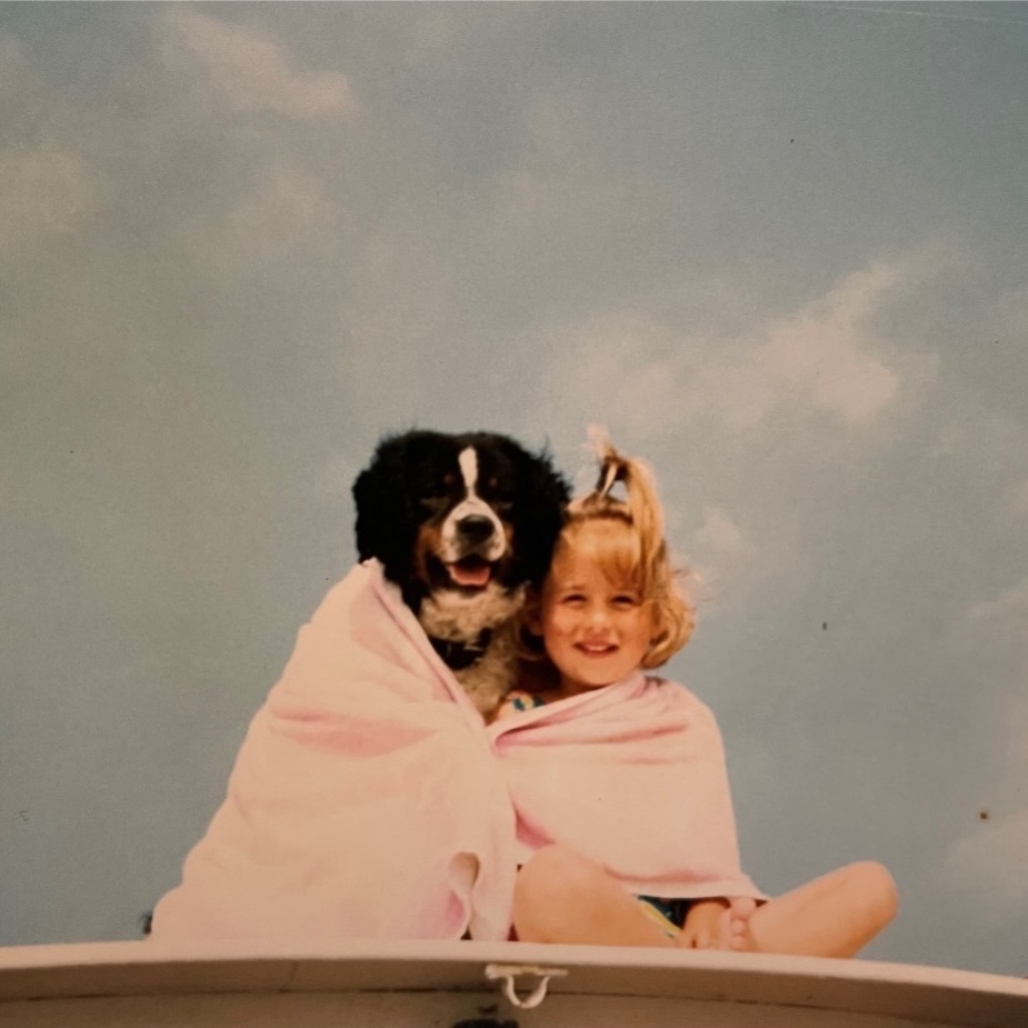 Mijn vader koos deze foto van onze hond en mij. Als ik ernaar kijk, herinner ik me onze bijzondere band. De Friese en agrarische wortels van mijn ouders inspireerden mijn liefde voor natuur, dieren en water.n.